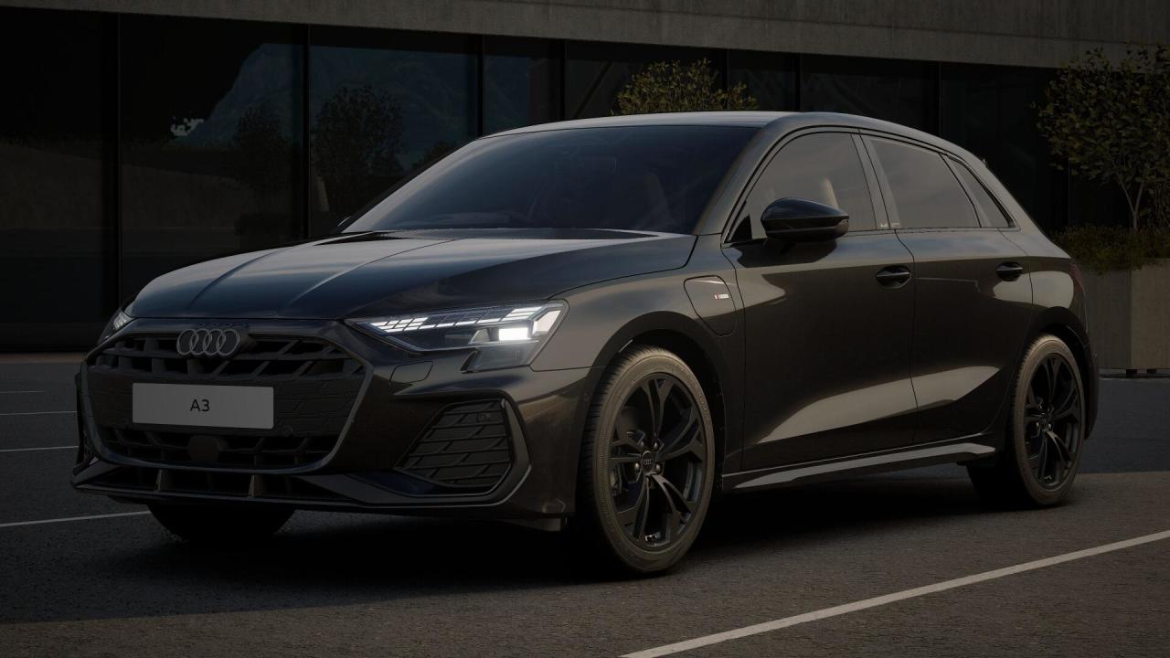 Poole Audi is pleased to present this stunning brand new Audi A3 Sportback, featuring a powerful 1.4-litre TFSI plug-in hybrid engine producing 204 PS, paired with a 7-speed S tronic automatic transmission. This particular car is finished in Mythos Black metallic paint, with a black interior, showcasing a combination of sportiness and sophistication.
